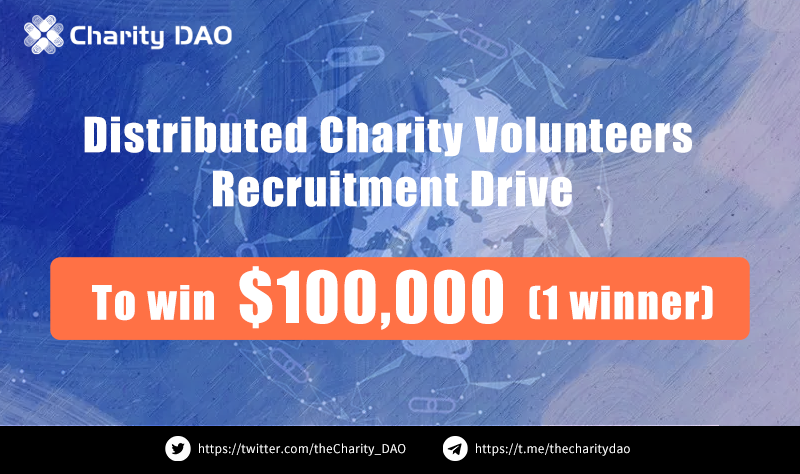 Incentive reward: After recruiting 235 volunteers worldwide, we will select a volunteer as Charity DAO’s official ambassador based on the implementation result and give him or her 100,000 dollars as reward.